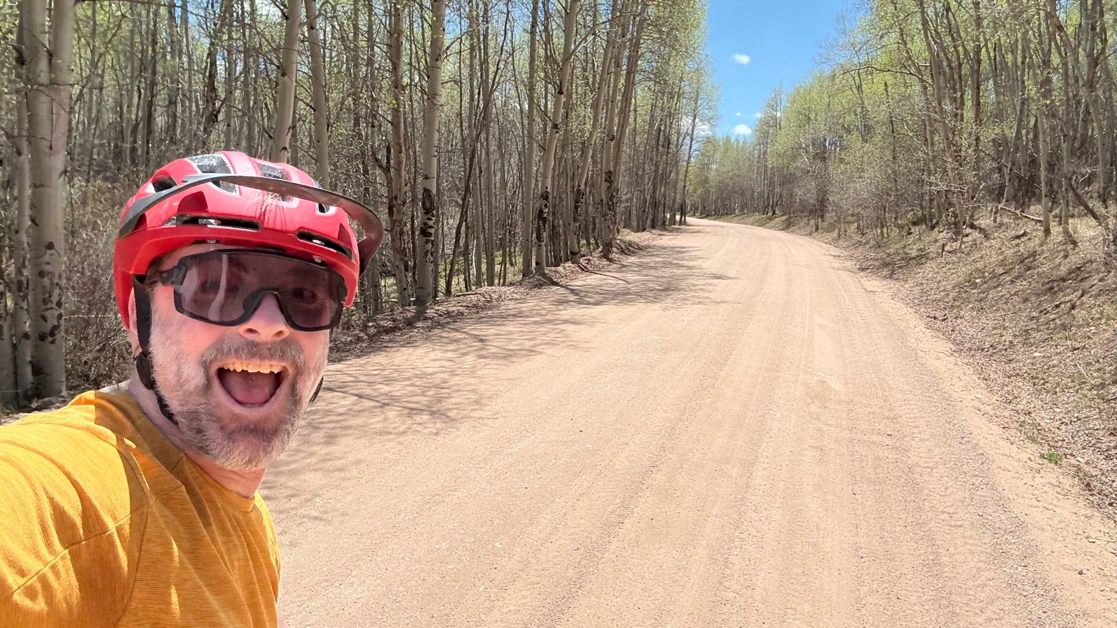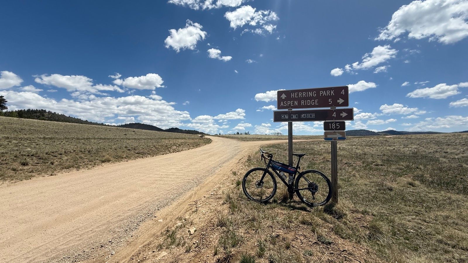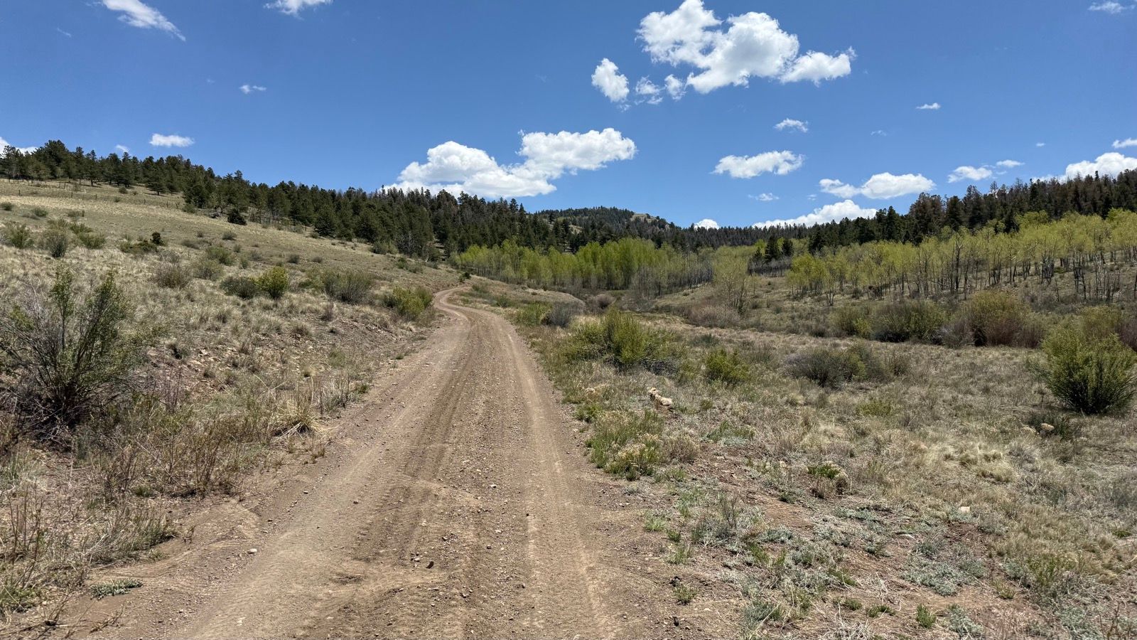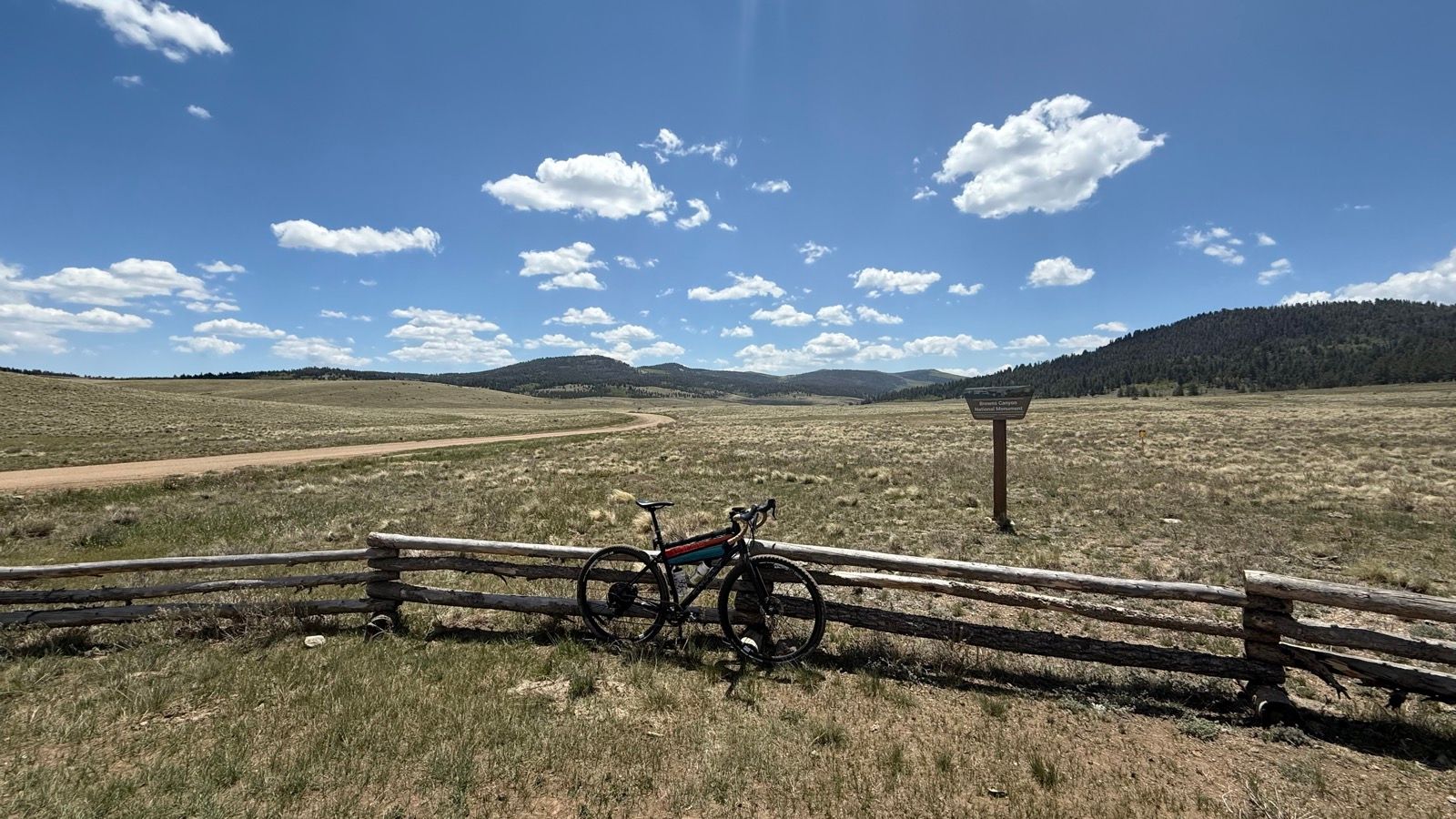 My ride started up Mushroom Gulch, just off HWY 285. The road was graded and wide, which would be the conditions for most of my day. The first section also had a healthy coating of mag chloride, which made it pretty fast.Saw some fauna on the way up, and throughout the ride. Sheep? Antelope? Uncle-ope? Hell, I don’t know. More graded dirt road, and gentle climbing grades. Exactly what a brand new hip less than a month old needs. I definitely saw some moto, ATV, and OHV traffic but not so much that it was an issue.This was the intersection I would return to. My route was a necktie, this spot is where I’d start going around the neck.Selfie while riding through an aspen grove. Super pretty! Part of my route would take me near Aspen Ridge, which is a pretty popular route from Salida to BV.I would turn right here, towards Aspen Ridge. Though I’d only be on CR185 for a little bit before turning off before getting on Aspen Ridge proper. Big open meadows with great vistas greeted me all along the route.I don’t know why, but I think cattle grates make neat pictures. Maybe because they frame the view for you? Just after turning off CR185 onto a more primitive dirt road, I saw these two folks on horseback. They had at least three dogs with them, maybe more. And one of the riders was yelling bloody murder at one of the dogs, who didn’t seem to be listening. Were they training a cattle dog? Unsure.The less maintained dirt road I had turned on to when I saw the horse folks. Still plenty rideable, but narrower, looser, and steeper. I think the plan was to turn left just in front of that rounded knob in the middle of the picture.I made it! This was kind of the goal of my ride, I saw this little spot on a map named Futurity, and wanted to have a look to see just what the heck it is. Futurity is apparently an old copper mine. There’s about 3-1/2 structures up there, three of which seem like they’ve had some restoration and are in decent shape. I didn’t stop long or try to poke around, due to the private property sign on the entrance road. Pretty neat to see, even if I couldn’t explore too much.The road I had mapped leaving Futurity had a bunch of logs thrown across it, which I summarily ignored as the road was a mapped and numbered USFS or county road according to the map. What I learned when plotting the route was that the road ended, but that a connector trail existed at the end of it which connected to another county road.